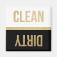 Glamorös ren/smutsig diskmaskinsmagnet i svart, vitt och guld.