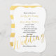 Elegant Faux Gold Foil Glamor | Inbjudan till Elegant bröllop. Utformning av Elke Clarke©. Annat stilar och färg finns i vår butik www.zazzle.com/monogramgallery. Ett vanligt handskriftsskript med ord "bröllop" lägger till den här klassiska, men moderna bröllopsinbjudan till stil. Texten är helt och hållet anpassade. Guld och vit stripe mönster på baksidan kan avlägsnas eller ett annat färg eller mönster kan begäras. Kommer med tomt vitt omslag. Guldfolie är en utskriven fotoeffekt.