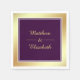 pappra elegant bröllop-servetter med elegant faux guld foil gräns mot mörkens lila bakgrund.