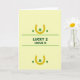 Designed with a pale chartreuse background, the card keeps a balanced, symmetrical layout that feels calm and inviting. At the top and bottom, matching scenes show an upward-facing golden horseshoe holding a four-leaf clover, like a shared lucky charm between two people 💚. On each side of those main icons, smaller three-leaf shamrocks in green sit neatly as accents, echoing the St. Patrick’s Day theme ☘️. Centered in the middle is the message “LUCKY 2 HAVE U” in forest green, set in uppercase lettering that reads clearly at a glance. Thin horizontal lines in the same forest green run above and below the text, framing it like a gentle underline and overline. The simple, flat artwork and strong color contrast make the gold and greens stand out without looking busy. The repeated horseshoe-and-clover pairing at both ends gives the design a sweet, companionable feel, like matching tokens exchanged between friends. The final look is two golden horseshoes with green clovers near the top and bottom, with the forest-green words centered between parallel lines on the chartreuse field.