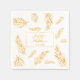 Den här eleganten har den pappra napkin som är utrustad med Desteis digitalt skapat mönster av fjädrar i programmet för den gyllene gulten färg. I mitten finns det en övertoning av gulten gräns och i den finns det anpassningsbara textområden för namn i det par som gifta sig och för bröllop. OBS! DET FINNS INGET VERKLIGT GULD PÅ DENNA PUNKT. UTFORMNINGEN ÄR EN DIGITAL BILD SOM SKRIVS UT PÅ PRODUKTEN.