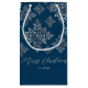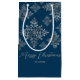 Desteis ursprungliga utformning av en dekorativ snöflingor i faux silver-grått struktur på blå bakgrund färg. Det finns också två anpassningsbara textområden. OBS! Designen är en digitalt skapat image som kommer att skrivas ut på produkten.