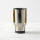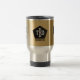 Faux guld har en bakgrund på den här resekaffesmuggen för era medarbetares milstolpe-årsdagar med namn, data eller annan text och företagets logotyp.
