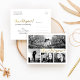 Anpassa den här Snyggten Photo Tack Postcard, designad med det moderna handskriptet faux guld text Tack! på vitt. Observera att guld är ett färg-tryck (gult) och inte guld metallisk folie av färg eller guld. Ersätt den fyra mallbilden med dina fyra favoritfoton. Ett av bilder är ett panoramafoto med brett vågrät och de andra tre är mindre. För bästa resultat använda högupplösta foton. Ändra även all mallinformation på båda sidor med din egen. Den här utformningen har en formulering: "Tack för att du deltar i vår speciella dag." Du kan byta ord med ditt eget.