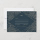 Den här chicens bröllopsinbjudan innehåller en mörk blått bakgrund och ett faux giled geometric ram tillverkat av botaniskt inslag. Baktill finns en luxuriös faux guld-design. Modern typografi lägger till en elegant som vrider till denna minimalistiska utformning från Kattunge Paj Prints.