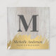 Faux Guld Brushed Monogram | Trä Grain Fyrkantigt Visitkort