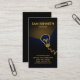 En mörk som lyfts fram av en glödlampa av typen Faux guld som tänder en ljusstråle av guld till din prestigefyllda namn och arbetsnamn. På basen finns kontaktuppgifterna.