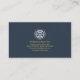 På andra sidan, i ett mörk blått lagrar, ligger den globala logotypen överst och följs av namn, kontaktuppgifter och en slogan för att sprida dina tjänster. Alla bokstäver här är i Faux guld.
