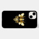 Guld, smycken, polygonbin med gyllene mousserande vingar mot svart bakgrund. Polygondjur i stil.Golden bin.