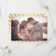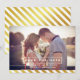 Anpassningsbar spara datum-anmälan med diagonalt randigt mönster i guld.
