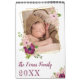 Personligens blommigt-kalender med egna foton, en för varje månad inuti ett geometriskt ram med utseendet faux guld och med rosa- och blomkål och grönt löv. På varje sida, tillsammans med fotot, finns det ett anteckningsavsnitt.
