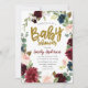 Faux Guld glitter burgundy blommigt babydusch Inbjudningar