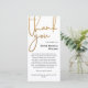 Tack för att du fick ett minnesmärke med ett foto av din älskade på baksidan. På omslaget, under Tack skrivet i ett handskript och tryckt med faux guld glitter, tillsätt det tack som står svart mot en vit bakgrund.