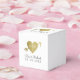 Romantisk utformning av ett faux guld-hjärta med en pil, personlig med namn och speciellt datum (bröllopsdag)