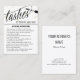 Eftervårdsinstruktionskort för en lash-artist med streck skrivet i ett hårt elegant på mönster av gyllene streck mot vitt. Ett mascara-trollspö i det övre hörnet av högerna. Lägg till efterhandsinstruktioner i svart mot en vit bakgrund. På baksidan av affärskortet för söt efterbehandlingsinstruktioner kan du också lägga till namn, rubrik och kontaktinformation.