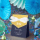 En elegant- och klassyfaux-guld-penselformering med marin blå bakgrund. Den här utformningen har också en modern arrangemang av personlig initialer i bruden och brudgummen. Denna enkla kombination av färg skapar ett sofistikerat, trendig och chic stil. Utformning av en förmånslåda i elegant bröllop med modernt inslag. Den enkla uppställningen av typografin ge är ett distinkt stil. Det finns också möjlighet att matcha bröllopsinbjudningar och andra artiklar i kontorsartiklar. Anpassa datum för initialer, namn och bröllop.