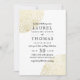 Elegantens vita bröllopsinbjudan med snöre tryckt i faux guld, med svart typsnitt.