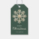 Den här elegant anpassningsbarna Faux Guld Snowflake Grönt Anpassningsbar Gift-Märkrn har en vacker vattenfärgssnöflinga på en Helgdag-bakgrund för rik, med meddelandet "grönt" i ett God jul-skript och linjen för din familj elegant. Perfekt för att lägga till en personlig och festlig beröring i helgdag. Den här designen är perfekt för att passa julklappar, personlig presenter och lyxgåvor, och kombinerar enkelhet och sofistikering.