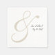 Faux handskriven notation bröllop napkins med stor överdriven amperand i beige och causal faux handskriven brud och groom namn och bröllop datum i svart.