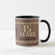Faux läderbakgrund med faux brass-stugor på den här muggen för dina medarbetares milstolpe-årsdagar, perfekten som tillägg till dina program för stimulans och motivation.