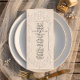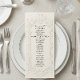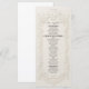Elevate your black-tie reception tablescapes with this sophisticated design featuring simulated relief details and timeless typography for a luxurious finish.This formal design centers on an elaborate, symmetrical baroque frame featuring scrolling flourishes and intricate floral relief motifs in soft gray. At the header, a decorative oval border encases a regal crest adorned with mirrored bird figures, set against a monochrome ivory and cream background. The text layout utilizes classic serif typography with small caps headers and delicate handwritten script accents to convey traditional romance. This is a flat printed image with a Faux Letterpress effect, not actual raised paper or embossed material.