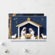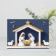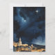 Observera att ingen riktig papperskorgar används i denna konstruktion. Kortet är platt, men har en fingerad 3D-effekt, med ett pappersliknande utseende i teckningen. Det här vackra och serene, moderna julkortet för nyskapelse har Heligans familj under en lysande guldstjärna av Betlehem. Denna elegant ger en bild av den första julen med ett minimalistiskt och contemporary. Den djupa indigo blå bakgrunden står vackert i kontrast till de ljusa vita romarna från Mary och Joseph och manerns gyllene accenter och det stabila tak. "Freden" och "Joy"-stämningar mellan stjärnorna kompletterar detta stilla bild. På baksidan finns en dramatisk, atmosfärisk natt himmel över staden Betlehem, i ett vattenfärgat stil, komplett med en glödande atar, som perfekt kompletterar den fredliga fronten. Perfekt för dem som tittar för ett kristet temat kort eller en icke-fotodesign, och de som uppskattar en modern, minimalistisk person tar sig an ett traditionellt tema. Klicka på "Anpassa" och redigera familjen namn och året vid grund på kortet till din egen.