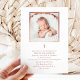 Dessa enkla och vackra Baptism- eller julklappningsinbjudningar har ditt baby-foto omgivet av en söt, faux ro guld gräns på en vit bakgrund. Inbjudningarna har också en matchande kor och en elegant, minimal layout.