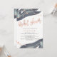 Det här fantastiska inbjudningskort för möhippan har faux ro guld stänk och typografi, och grått vattenfärgsutseende geodedesign.