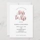 Faux ro guld inbjudningskort för möhippan. En vacker men enkel designinbjudan med faux ro guld typography accent "Miss to Mrs" och koordinering av backsidan. Enkel att redigera eller ta bort den tillgängliga fälten för att anpassa informationen med dina egna uppgifter för en avslutat professionell och anpassningsbar. Besök min butik för att köpa matchande artiklar, t.ex. klistermärken och svps.