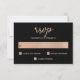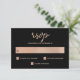 Dessa glamorösa bröllop OSA-kort har en mörk svart bakgrund och texten i trendig ro guld färgad. Elegantens typografi lägger till en beröring i extra finare. Kortets baksida har en matchande rosa bokeh-hjärtan mönster.
