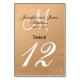 Tryckt fotoeffekt ro guld-folie Bröllop Bordsnummer-kort med anpassningsbar monogram. Design av Elke Clarke ©. Anpassa med din brid och triom-namn, nygifta efternamn, inledande monogram och bröllop-datum. Beställ en per bord med varje bordsnummer men ta ändå emot massrabatten för totalt beställt antal. Annan tillgänglig färg