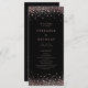I de här bröllopsprogrammen i anpassadet finns faux ro guld foil-konetti-punkter på en svart bakgrund. De är perfekt för att dela med sig av dina bröllop-ceremonier till dina gäster och är perfekt för alla bröllop-teman eller -säsong. Anpassa genom att lägga till information. Matchande objekt är tillgängliga.