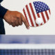 Amerikanska flagga är som om det är tillverkat av något verkligt material - för patrioter och fläkt i USA:s förenade stater lycklig independence day!