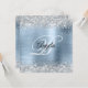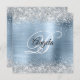 Faux Shiny Silver Glitter Blek Blue Foil Monogram Inbjudningar