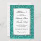 Inbjudan med inbjudan till gästerna i elegant bröllop, med en faux silver gräns och en vacker faaux teal glitter bakgrund. Lägg bara till din händelseinformation i den här mallen som är enkel att använda för att göra den till en inbjudan av typen en. Vänd över kortet för att lägga till briden och triomens monogram på baksidan av kortet.