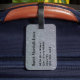 Bagagetagg med information om namn och adress på ett faux silver glitter. Anpassa med ditt namn och adress med hjälp av de enkla mallarna. Teckensnitt färg, stil och storlekt teckensnitt är anpassade. Perfekt för varje respåse.