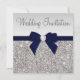 Elegant, personlig anpassningsbar silver och mörk, blåa bröllopsinbjudningar med ett vackert glitter i silver tryckt bild av sekvinjuveler, ädelstenar, glitter mönster, söt, sophisticated shiny print mörk marinblå knärör och rosett band och söt digitala diamantjuvlar och mörk grått text på en silver gradient bakgrund.Vänligen notera: Alla inbjudningskort på Zazzle har platta tryckta bilder - inte riktiga knärör, diamanter eller sekvenser. Dessa klassliga, glamorösa inbjudningskort för bröllop är dekorerade på båda sidor. Vackra, snyggt, chic, trendig, moderna, glitz- och glamorinbjudningar. Text, teckensnitt och färg i teckensnitt kan anpassas. Om du behöver hjälp med att anpassa din produkt kan du kontakta mig genom min butik. Jag kommer att vara lycklig för att hjälpa till. Jag har matchande produkter till bröllop i min butik.