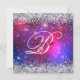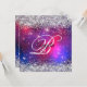 En elegant som fick en 60-årsinbjudan till henne. Faux silver glitter med gnistor mot ett svart, lila och blått sfärfotografi. Monogrammet för svartvit kalligrafi i finare och all speciell händelsetext kan anpassas. All glansig silvrig inslag i denna moderna gigantiska design är digital grafik. Du kan överföra den monogrammade designen på framsidan till en matchande liten eller medelstor gåva.