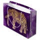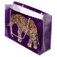 Vackra hand plockade-stamfauna faux-guld-elefant på en lila borshstroke-bakgrund.