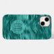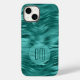 I det här telefonfallet placeras dubblans siffermonogram i mörk teal på en halvgenomskinlig ljusare tealblåcirkelbanderoll. Banderollen är på söt med faux teal foil abstrakt vinkarare. Shimmery, och se till att bli uppmärksammad.