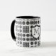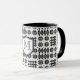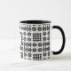 En chic Black and White Ringer Mugg som kan anpassa sig med ditt Monogram, med en mönster av traditionella Welsh Tapestry-motiv i Svarta på vit bakgrund.mönster kan justeras för att passa valfritt mugg och du kan flytta, flytta om storlekt eller ta bort "skölden" och Monogram om du vill.