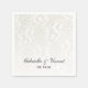 Anpassa den söt Faux White Snöre Bröllop-Pappra servetten med bridens och brudgummens personliga namn och datum för använda på din möhippa-lunchtimme eller giftermål-mottagningslucktimme. Dessa engångsservetter med anpassningsbar i elegant har ett foto av intrikat vitt snöre.
