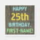 Den här födelsedagsfesten med roligt napkin har ett meddelande som "LYCKLIG 25:e BIRTHDAY, FÖRSTA-NAMN!", där namn kan vara personlig. Bakgrunden har ett strålande, brunt, faux-trönans utseende mönster. Personligens meddelandetext har färg som blått, gult och grönt, och det ser ut som om det är färgat, med stencilerat tryck. Napkins som dessa skulle kanske kunna användas i en födelsedagsfest till någon som firar sin tjugofemte födelsedag. [~Z0000292]
