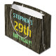 Den här roligtens presentsäck är utformad med ett meddelande som "STEPHEN's 29:e BIRTHDAY!", där namn kan vara personlig. Bakgrunden har ett strålande, brunt, faux-trönans utseende mönster. Anpassadets meddelandetext har färg som blått, gult och grönt, och det har ett utseende som inspireras av det som består av målade, stencilade bokstäver. En födelsedagstäckande presentpåse som den här kan vara en roligt, ett fånig till ge en gåva till någon som firar sin 29-årsdag. [~Z0000319]
