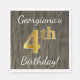 Den här enkla pappra napkin-designen innehåller ett budskap som "Georgianas 4e födelsedagen!", där "4:e" har ett faux guld-liknande utseende, på en ytlig träbakgrund. Namn kan anpassas. Den skulle kunna användas i en födelsedagsfest till någon som firar sin fjärde födelsedag. [~Z0000084]