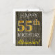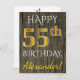 Den här enkla vykortsdesignen för personligens födelsedag innehåller meddelandet "LYCKLIG 55:e BIRTHDAY", där "55:e" har ett utseende som liknar guld. På framsidan finns också en skräddarsydd namn, och en ytlig träbakgrund. Baksidan innehåller ett anpassat födelsedagsmeddelande, tillsammans med anpassadet adress för mottagaren av födelsedagskort. Det skulle kunna ges till någon som firar sin femtiofemårsdag. [~Z0000066]
