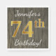 Den här enkla pappra napkin-designen innehåller ett meddelande som "Jennifers 74:e födelsedag!", där "74:e" har ett faux-guld-liknande utseende på en fin träbakgrund. Namn kan vara personlig. Den skulle kunna användas i en födelsedagsfest till någon som firar sin sjuttiofjärde födelsedag. [~Z0000084]