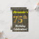 I födelsedagsfest inbjudan finns ett meddelande som "Alexander’s 75:e Birthday Celebration!", där namn kan anpassas och där 75:e har ett faux guld-liknande utseende. Den har också en bakgrund med rustiskt utseende på träet. Händelseinformationen på baksidan kan anpassas. Det skulle kunna användas för människor i inbjudan till någons sjuttiofemte födelsedagskalender eller födelsedagsfest. [~Z0000119]