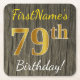 Denna enkla pappra underlägg har ett meddelande som "FirstName's 79 Birthday!", där "79:e" har ett utseende som liknar guld/imitation, på en bakgrund som har ett rustiskt faux wood-utseende mönster. Namn kan anpassas. Personlig pappra underlägg som dessa skulle kanske kunna användas i en födelsedagsfest till någon som firar sin sjuttionionde årsdag. [~Z0000198]