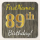 Faux Wood, Faux Guld 89 Birthday + Custom Name Underlägg Papper Kvadrat
